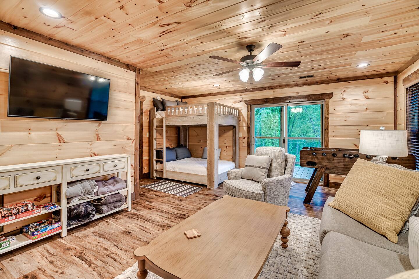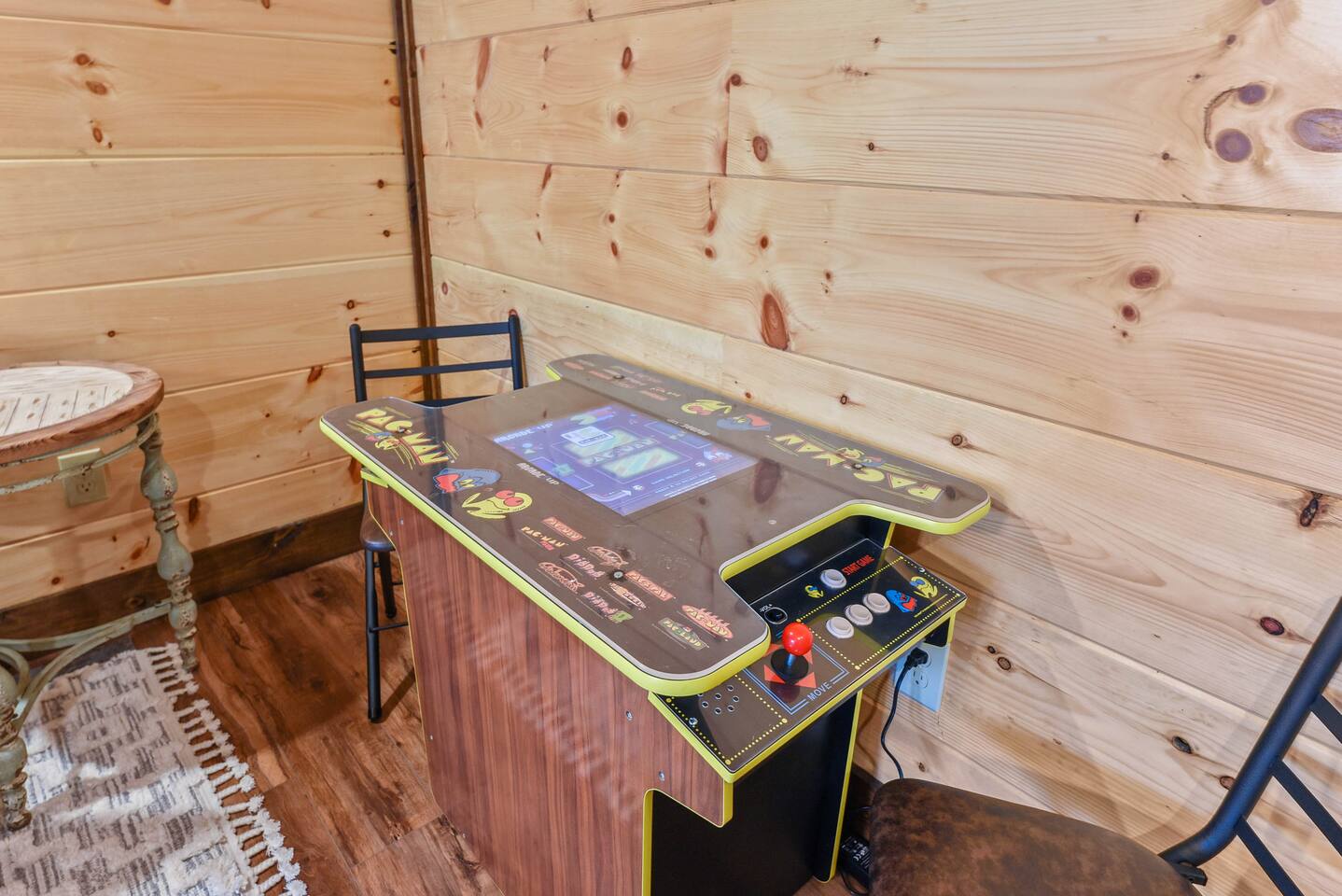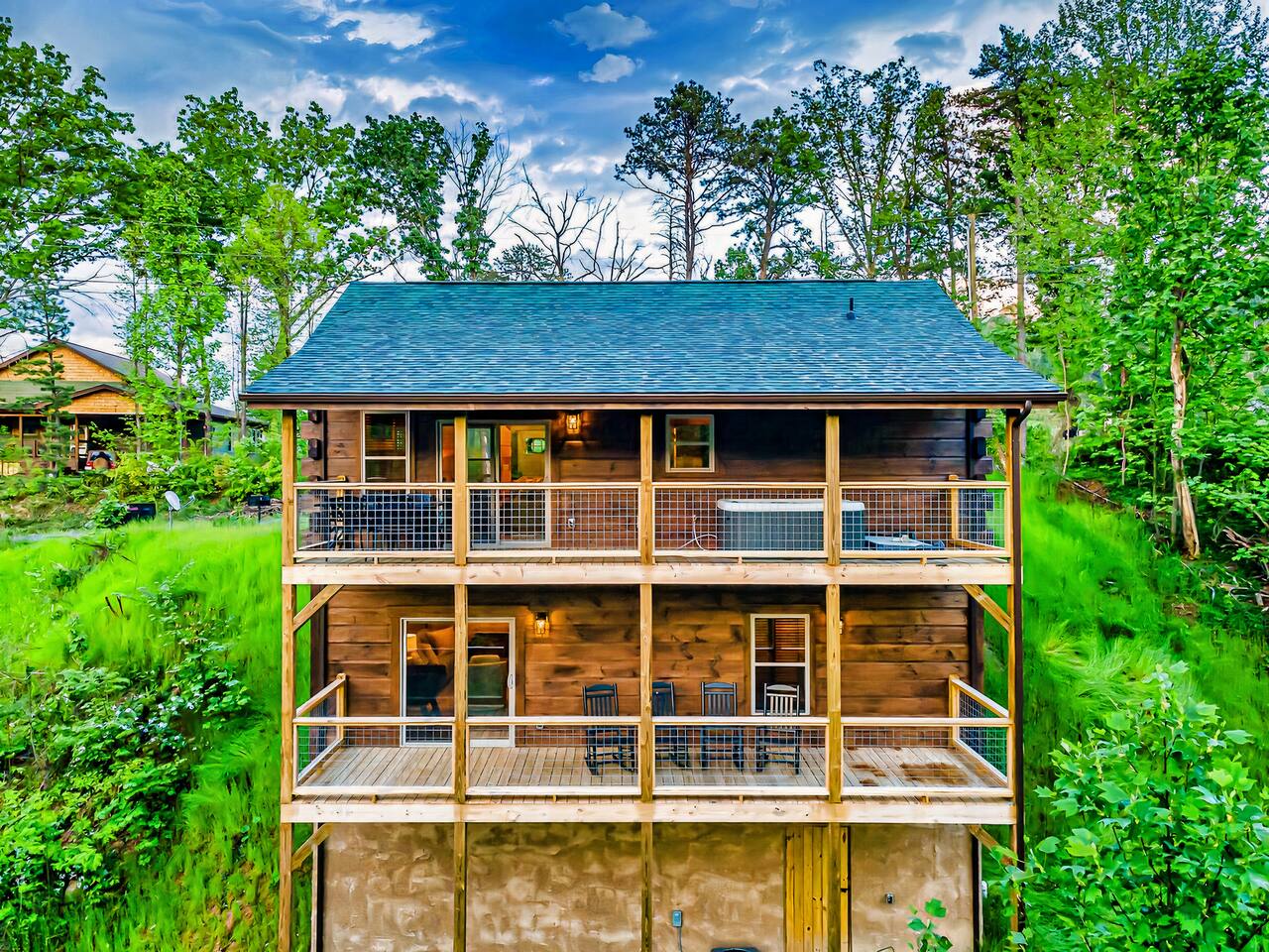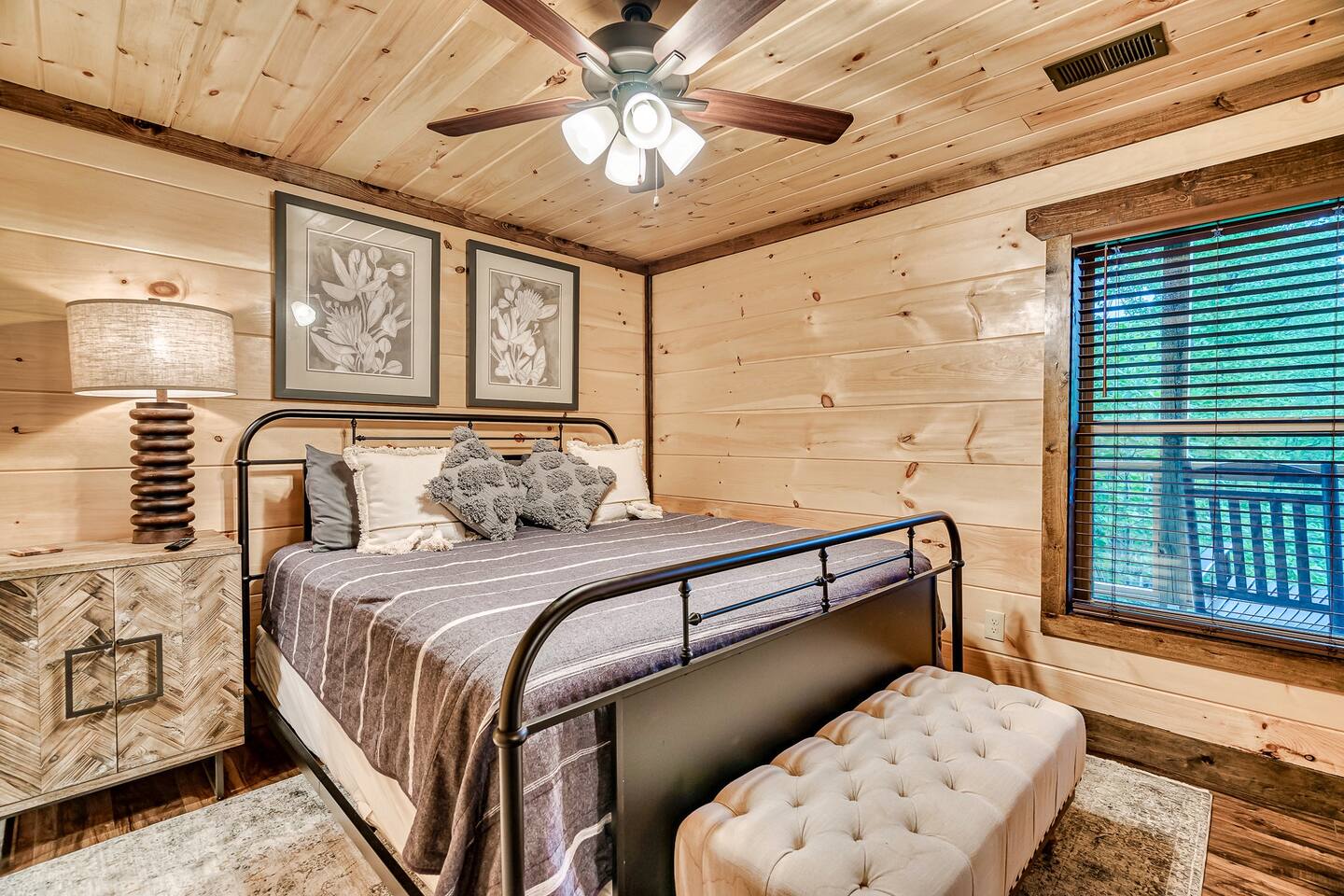 HIGHLIGHTS โ 2 ensuite king bedrooms (1 on each floor) + bunk bed โ 2 full bathrooms with shower/tub combo โ Fully-stocked kitchen โ Outdoor hot tub โ Free access to Chalet Village Clubhouse amenities: pool, tennis courts and pickleball courts โ High-speed free Wi-Fi โ 4 smart TVs to stream Netflix, Roku, Amazon Prime Video, Hulu โ Game room with foosball table, Pac-Man vintage arcade machine and board games โ Charcoal BBQ grill โ Washer and dryer within cabin โ Dedicated workspace for remote workers โ Family-friendly essentials: baby bath, high chair, pack n play โ 2 spacious decks with scenic views โ Electric fireplace โ On-site free parking Here are a few words from our past guests: โWow, this was everything we could asked for! Jaw dropping interior, my family was so excited and happy. I could not ask for a better mountain cabin experience!!" - Jacquelyn "We loved our getaway to Patrickโs cabin. Our plans included hiking, zip lining, and relaxing back at this cozy cabin. We utilized the hot tub daily and the kids loved the pac man and foosball games (my husband too). My mom came with and she got her own private master bedroom and bathroom upstairs. Thank you!!!" - Lesley โThis cabin was AMAZING! We are a family of five and it was perfect for us. The location is top notch. Right in between Pigeon Forge and Gatlinburg. It is up in the mountains so we literally felt like we were living in a tree house when we were out on the back porch. We saw bears everyday on the drive up to it, and a few outside our window. The beds and furnishings were very comfortable. The hot tub was amazing after a long day of hiking and being at the parks. The oversized washer and dryer was a bonus! Patrick the owner was very responsive when I had questions before our stay, and he checked in on how it was going for us via the app. No doubt about it, I would definitely stay here again. I have already sent the listing to many of my friends as a recommendation for them to stay in as well.โ - Christina โโ BEDROOMS โโ Indulge in privacy and comfort with spacious en suite bedrooms on each floor, featuring charming wood-paneled walls and modern finishes, ensuring a true home away from home experience. Both bedrooms boast plush king-sized beds adorned with soft linens, smart TVs, large closets for extended stays, room darkening shades, and ceiling fans. The game room downstairs offers additional sleeping space with a bunk bed featuring full-sized mattresses, perfect for kids or young adults. We've also provided a Pack nโ Play/travel crib for your convenience. โโ BATHROOMS โโ Each bathroom is attached to a bedroom and equipped with a shower/tub combination, offering the choice of a quick shower or a soothing bath after a day of exploring. We've stocked both bathrooms with shampoo, soap and hair dryers. For families with little ones, a baby bath is also available. โโ KITCHEN & LIVING ROOM โโ Prepare delightful home-cooked meals in the luxurious kitchen, fully equipped with a Frigidaire electric stove, dishwasher, microwave, oven, cooking basics, utensils, fridge, freezer, and a Keurig Duo coffee maker. The open layout leads to an elegant dining area with a charming wood dining table for 5 and bar seating for 2, offering delightful views through the light-filled windows. A high chair is also available for the little ones. Relax and bond with your group in the inviting living room, where a plush sofa and smart TV await you with streaming platforms like Netflix, Roku, Amazon Prime Video, and Hulu. The electric fireplace and high ceilings create a bright and welcoming ambiance. Stay connected with high-speed free Wi-Fi and get some work done on the dedicated workspace desk. For entertainment, head downstairs to the game room, featuring a vintage arcade machine and a foosball table. When not gaming, enjoy movies on the smart TV while engaging in puzzles or board games. For added convenience, a washer and dryer are available within the cabin. โโ OUTDOOR SPACE โโ Unwind on the main floor or lower deck while soaking in the scenic and serene views. On the lower deck, relax on rocking chairs with a book or your favorite drink, embracing the crisp mountain air. After a day of adventure, hop in the private hot tub on the main floor deck, accommodating up to 4 people. Al fresco dining awaits you on this deck, with a spacious dining table for 6. Grill enthusiasts can savor burgers and hot dogs using the charcoal BBQ grill with essential barbecue utensils. Ample free parking is available on-site, and a covered porch at the front of the house adds to your convenience. During your stay, enjoy complimentary access to the Chalet Village Neighborhood Clubhouse pool and lighted tennis courts. This mountain retreat places you close to the Great Smoky Mountains National Park, the renowned Skybridge, downtown Gatlinburg, Pigeon Forge, and Dollywood. โ โ Book Todayโโ