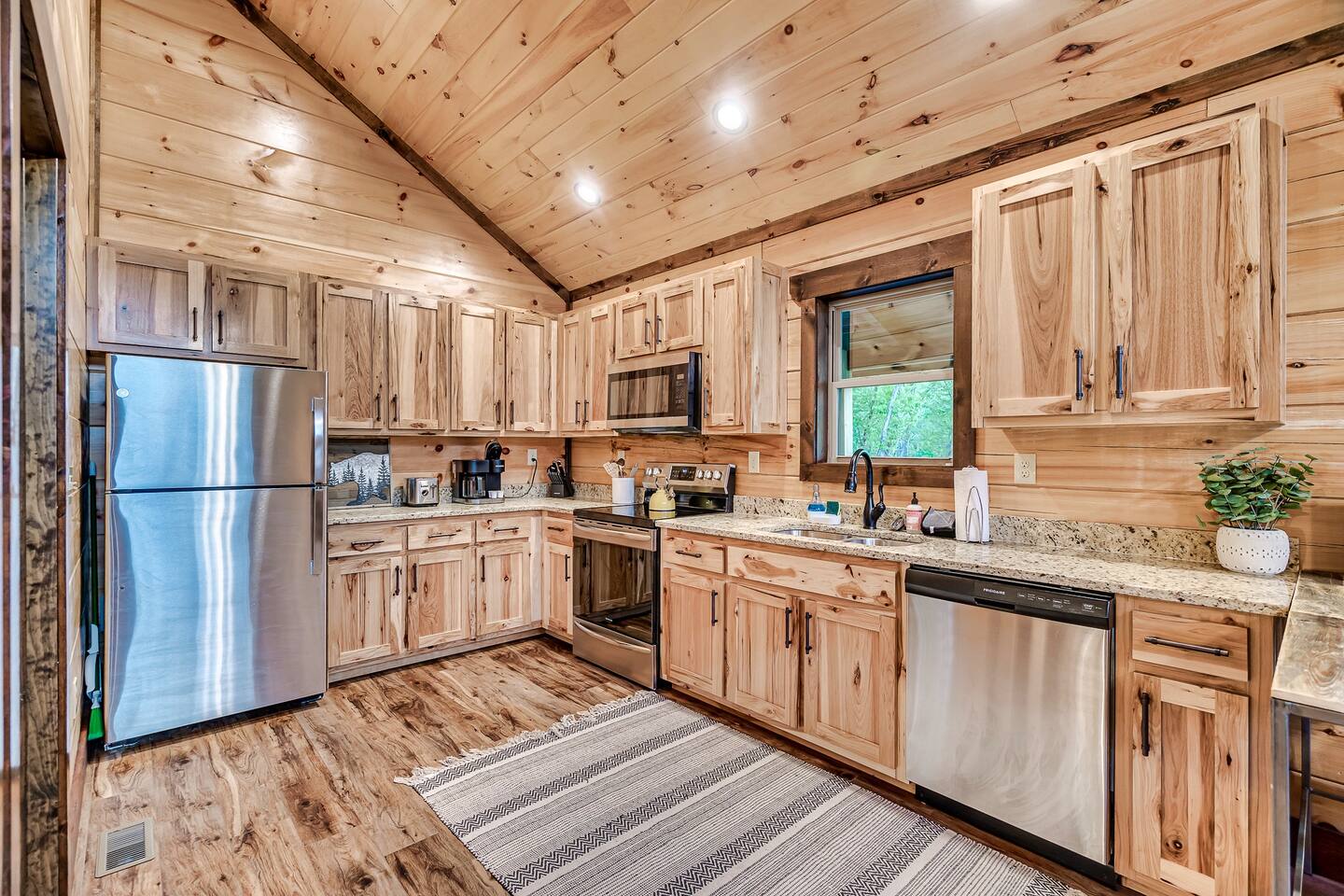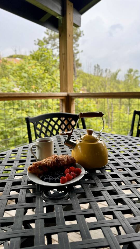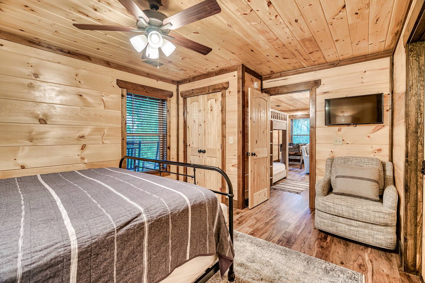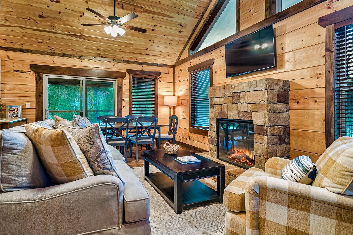 HIGHLIGHTS โ 2 ensuite king bedrooms (1 on each floor) + bunk bed โ 2 full bathrooms with shower/tub combo โ Fully-stocked kitchen โ Outdoor hot tub โ Free access to Chalet Village Clubhouse amenities: pool, tennis courts and pickleball courts โ High-speed free Wi-Fi โ 4 smart TVs to stream Netflix, Roku, Amazon Prime Video, Hulu โ Game room with foosball table, Pac-Man vintage arcade machine and board games โ Charcoal BBQ grill โ Washer and dryer within cabin โ Dedicated workspace for remote workers โ Family-friendly essentials: baby bath, high chair, pack n play โ 2 spacious decks with scenic views โ Electric fireplace โ On-site free parking Here are a few words from our past guests: โWow, this was everything we could asked for! Jaw dropping interior, my family was so excited and happy. I could not ask for a better mountain cabin experience!!" - Jacquelyn "We loved our getaway to Patrickโs cabin. Our plans included hiking, zip lining, and relaxing back at this cozy cabin. We utilized the hot tub daily and the kids loved the pac man and foosball games (my husband too). My mom came with and she got her own private master bedroom and bathroom upstairs. Thank you!!!" - Lesley โThis cabin was AMAZING! We are a family of five and it was perfect for us. The location is top notch. Right in between Pigeon Forge and Gatlinburg. It is up in the mountains so we literally felt like we were living in a tree house when we were out on the back porch. We saw bears everyday on the drive up to it, and a few outside our window. The beds and furnishings were very comfortable. The hot tub was amazing after a long day of hiking and being at the parks. The oversized washer and dryer was a bonus! Patrick the owner was very responsive when I had questions before our stay, and he checked in on how it was going for us via the app. No doubt about it, I would definitely stay here again. I have already sent the listing to many of my friends as a recommendation for them to stay in as well.โ - Christina โโ BEDROOMS โโ Indulge in privacy and comfort with spacious en suite bedrooms on each floor, featuring charming wood-paneled walls and modern finishes, ensuring a true home away from home experience. Both bedrooms boast plush king-sized beds adorned with soft linens, smart TVs, large closets for extended stays, room darkening shades, and ceiling fans. The game room downstairs offers additional sleeping space with a bunk bed featuring full-sized mattresses, perfect for kids or young adults. We've also provided a Pack nโ Play/travel crib for your convenience. โโ BATHROOMS โโ Each bathroom is attached to a bedroom and equipped with a shower/tub combination, offering the choice of a quick shower or a soothing bath after a day of exploring. We've stocked both bathrooms with shampoo, soap and hair dryers. For families with little ones, a baby bath is also available. โโ KITCHEN & LIVING ROOM โโ Prepare delightful home-cooked meals in the luxurious kitchen, fully equipped with a Frigidaire electric stove, dishwasher, microwave, oven, cooking basics, utensils, fridge, freezer, and a Keurig Duo coffee maker. The open layout leads to an elegant dining area with a charming wood dining table for 5 and bar seating for 2, offering delightful views through the light-filled windows. A high chair is also available for the little ones. Relax and bond with your group in the inviting living room, where a plush sofa and smart TV await you with streaming platforms like Netflix, Roku, Amazon Prime Video, and Hulu. The electric fireplace and high ceilings create a bright and welcoming ambiance. Stay connected with high-speed free Wi-Fi and get some work done on the dedicated workspace desk. For entertainment, head downstairs to the game room, featuring a vintage arcade machine and a foosball table. When not gaming, enjoy movies on the smart TV while engaging in puzzles or board games. For added convenience, a washer and dryer are available within the cabin. โโ OUTDOOR SPACE โโ Unwind on the main floor or lower deck while soaking in the scenic and serene views. On the lower deck, relax on rocking chairs with a book or your favorite drink, embracing the crisp mountain air. After a day of adventure, hop in the private hot tub on the main floor deck, accommodating up to 4 people. Al fresco dining awaits you on this deck, with a spacious dining table for 6. Grill enthusiasts can savor burgers and hot dogs using the charcoal BBQ grill with essential barbecue utensils. Ample free parking is available on-site, and a covered porch at the front of the house adds to your convenience. During your stay, enjoy complimentary access to the Chalet Village Neighborhood Clubhouse pool and lighted tennis courts. This mountain retreat places you close to the Great Smoky Mountains National Park, the renowned Skybridge, downtown Gatlinburg, Pigeon Forge, and Dollywood. โ โ Book Todayโโ