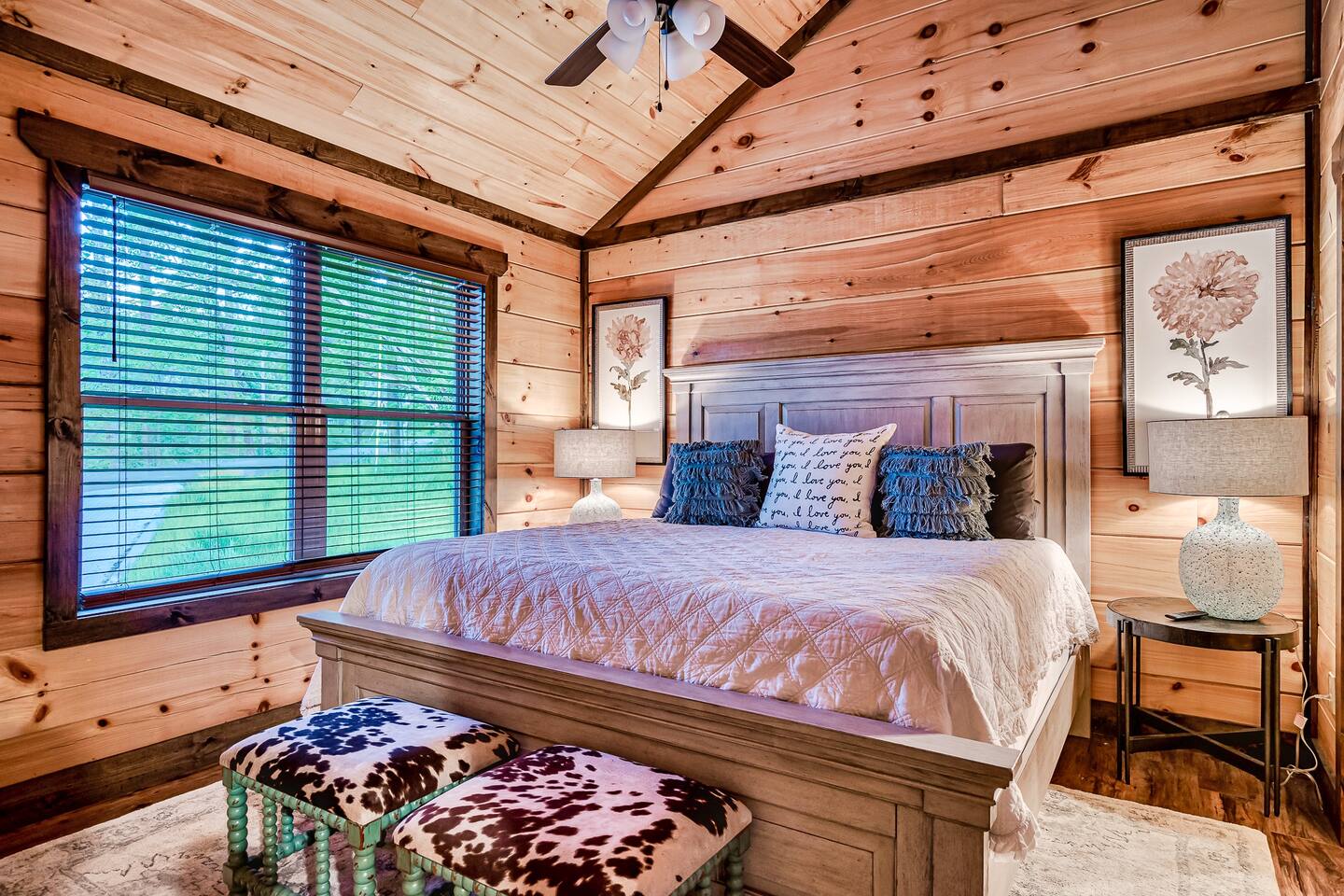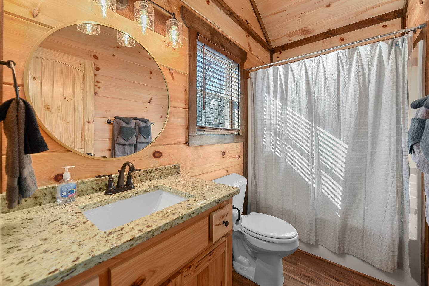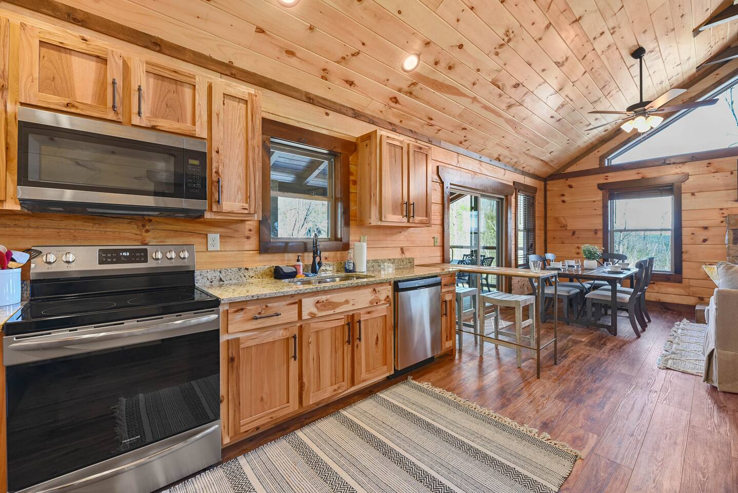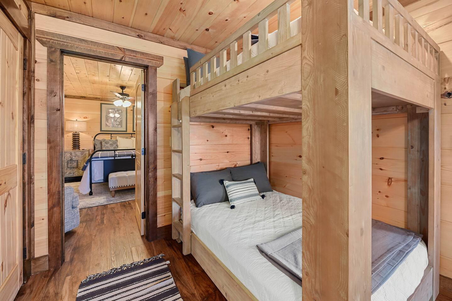 HIGHLIGHTS โ 2 ensuite king bedrooms (1 on each floor) + bunk bed โ 2 full bathrooms with shower/tub combo โ Fully-stocked kitchen โ Outdoor hot tub โ Free access to Chalet Village Clubhouse amenities: pool, tennis courts and pickleball courts โ High-speed free Wi-Fi โ 4 smart TVs to stream Netflix, Roku, Amazon Prime Video, Hulu โ Game room with foosball table, Pac-Man vintage arcade machine and board games โ Charcoal BBQ grill โ Washer and dryer within cabin โ Dedicated workspace for remote workers โ Family-friendly essentials: baby bath, high chair, pack n play โ 2 spacious decks with scenic views โ Electric fireplace โ On-site free parking Here are a few words from our past guests: โWow, this was everything we could asked for! Jaw dropping interior, my family was so excited and happy. I could not ask for a better mountain cabin experience!!" - Jacquelyn "We loved our getaway to Patrickโs cabin. Our plans included hiking, zip lining, and relaxing back at this cozy cabin. We utilized the hot tub daily and the kids loved the pac man and foosball games (my husband too). My mom came with and she got her own private master bedroom and bathroom upstairs. Thank you!!!" - Lesley โThis cabin was AMAZING! We are a family of five and it was perfect for us. The location is top notch. Right in between Pigeon Forge and Gatlinburg. It is up in the mountains so we literally felt like we were living in a tree house when we were out on the back porch. We saw bears everyday on the drive up to it, and a few outside our window. The beds and furnishings were very comfortable. The hot tub was amazing after a long day of hiking and being at the parks. The oversized washer and dryer was a bonus! Patrick the owner was very responsive when I had questions before our stay, and he checked in on how it was going for us via the app. No doubt about it, I would definitely stay here again. I have already sent the listing to many of my friends as a recommendation for them to stay in as well.โ - Christina โโ BEDROOMS โโ Indulge in privacy and comfort with spacious en suite bedrooms on each floor, featuring charming wood-paneled walls and modern finishes, ensuring a true home away from home experience. Both bedrooms boast plush king-sized beds adorned with soft linens, smart TVs, large closets for extended stays, room darkening shades, and ceiling fans. The game room downstairs offers additional sleeping space with a bunk bed featuring full-sized mattresses, perfect for kids or young adults. We've also provided a Pack nโ Play/travel crib for your convenience. โโ BATHROOMS โโ Each bathroom is attached to a bedroom and equipped with a shower/tub combination, offering the choice of a quick shower or a soothing bath after a day of exploring. We've stocked both bathrooms with shampoo, soap and hair dryers. For families with little ones, a baby bath is also available. โโ KITCHEN & LIVING ROOM โโ Prepare delightful home-cooked meals in the luxurious kitchen, fully equipped with a Frigidaire electric stove, dishwasher, microwave, oven, cooking basics, utensils, fridge, freezer, and a Keurig Duo coffee maker. The open layout leads to an elegant dining area with a charming wood dining table for 5 and bar seating for 2, offering delightful views through the light-filled windows. A high chair is also available for the little ones. Relax and bond with your group in the inviting living room, where a plush sofa and smart TV await you with streaming platforms like Netflix, Roku, Amazon Prime Video, and Hulu. The electric fireplace and high ceilings create a bright and welcoming ambiance. Stay connected with high-speed free Wi-Fi and get some work done on the dedicated workspace desk. For entertainment, head downstairs to the game room, featuring a vintage arcade machine and a foosball table. When not gaming, enjoy movies on the smart TV while engaging in puzzles or board games. For added convenience, a washer and dryer are available within the cabin. โโ OUTDOOR SPACE โโ Unwind on the main floor or lower deck while soaking in the scenic and serene views. On the lower deck, relax on rocking chairs with a book or your favorite drink, embracing the crisp mountain air. After a day of adventure, hop in the private hot tub on the main floor deck, accommodating up to 4 people. Al fresco dining awaits you on this deck, with a spacious dining table for 6. Grill enthusiasts can savor burgers and hot dogs using the charcoal BBQ grill with essential barbecue utensils. Ample free parking is available on-site, and a covered porch at the front of the house adds to your convenience. During your stay, enjoy complimentary access to the Chalet Village Neighborhood Clubhouse pool and lighted tennis courts. This mountain retreat places you close to the Great Smoky Mountains National Park, the renowned Skybridge, downtown Gatlinburg, Pigeon Forge, and Dollywood. โ โ Book Todayโโ