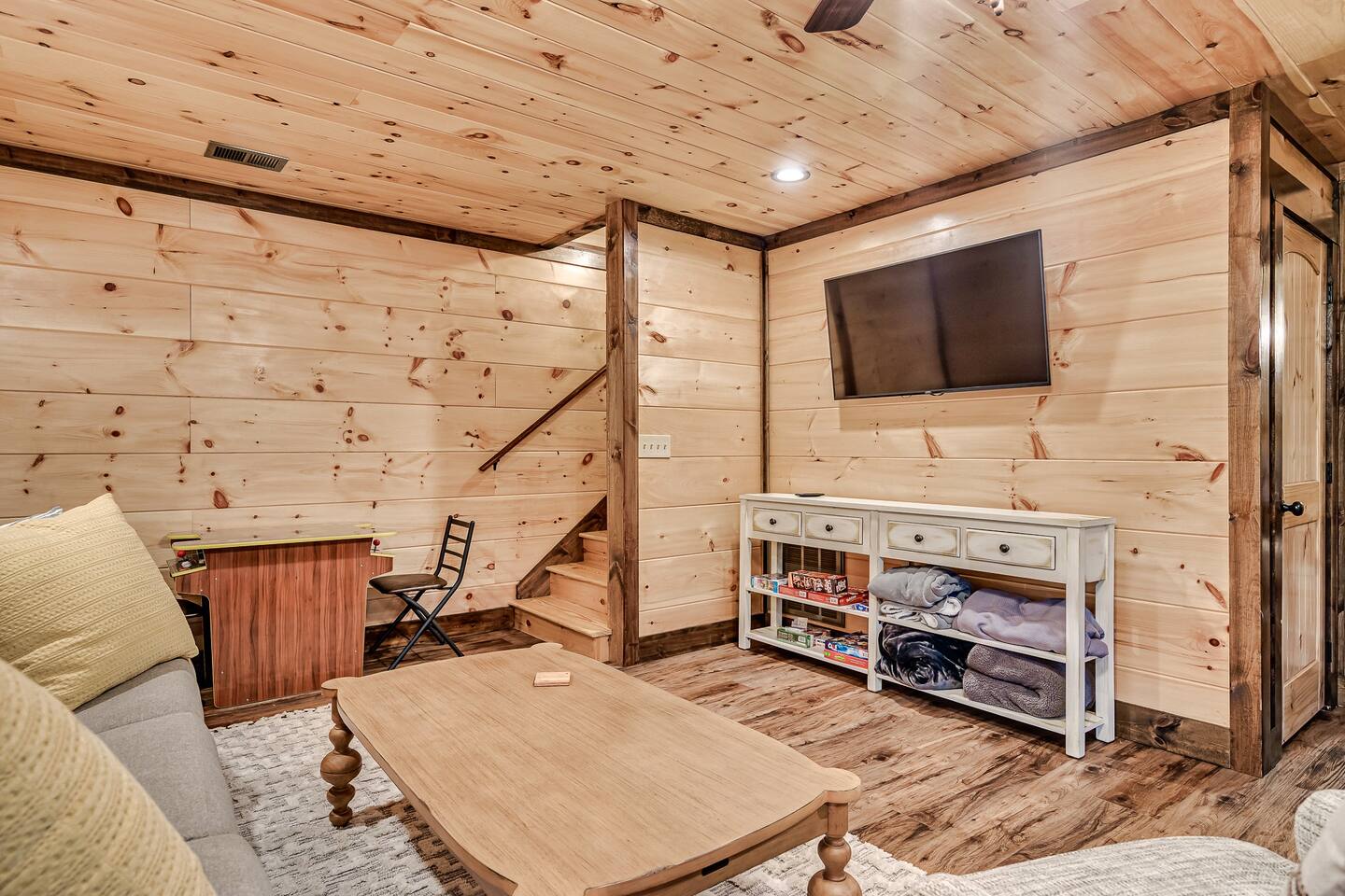 Chalet Village is an upscale family friendly neighborhood right by the entrance to the Great Smoky Mountains National park. The cabin is only 1.5 miles to the Gatlinburg Welcome Center where you can park for free & catch the trolley into Gatlinburg! Whether you're interested in hiking, skiing, golfing or exploring Gatlinburg, Pigeon Forge or Dollywood this is the perfect location! As our guests, you have complimentary access to the Chalet Village North Clubhouse which has pools & tennis for some fun in the sun! Pool is open from Memorial Day weekend to Labor Weekend. Tennis is open year-round and has lights allowing matches to continue until midnight!